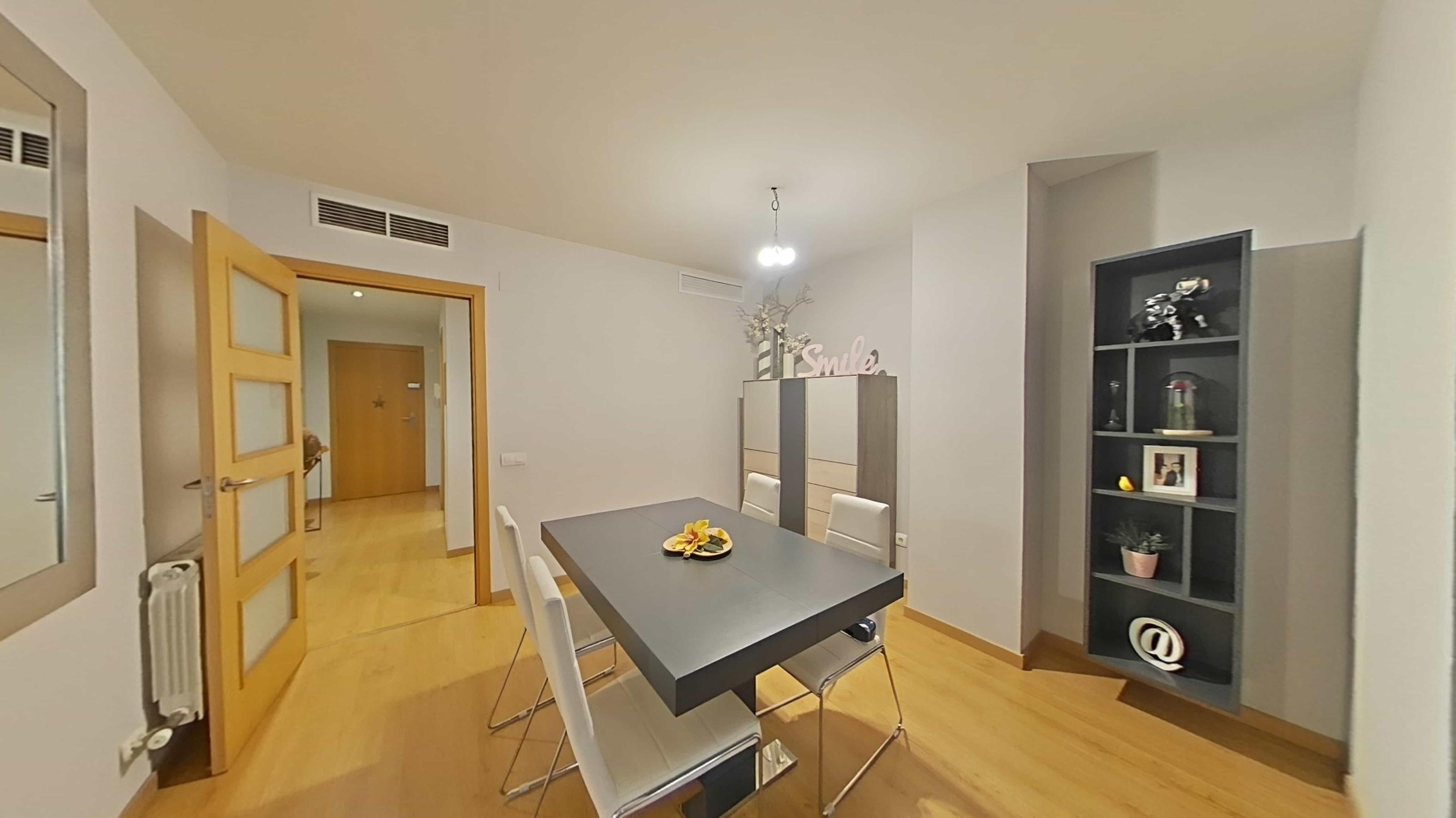 La cocina es independiente y está totalmente equipada con modernos electrodomésticos, perfecta para aquellos a quienes les encanta cocinar y disfrutar de la gastronomía en casa. Además, cuenta con generosos espacios de almacenamiento, lo que la convierte en un lugar práctico y organizado. El piso cuenta con cuatro cómodas habitaciones, ideales para familias o para quienes necesitan un espacio adicional que puede ser utilizado como oficina o zona de estudio. El dormitorio principal dispone de un armario empotrado, lo que maximiza el espacio y proporciona un aire ordenado al ambiente.