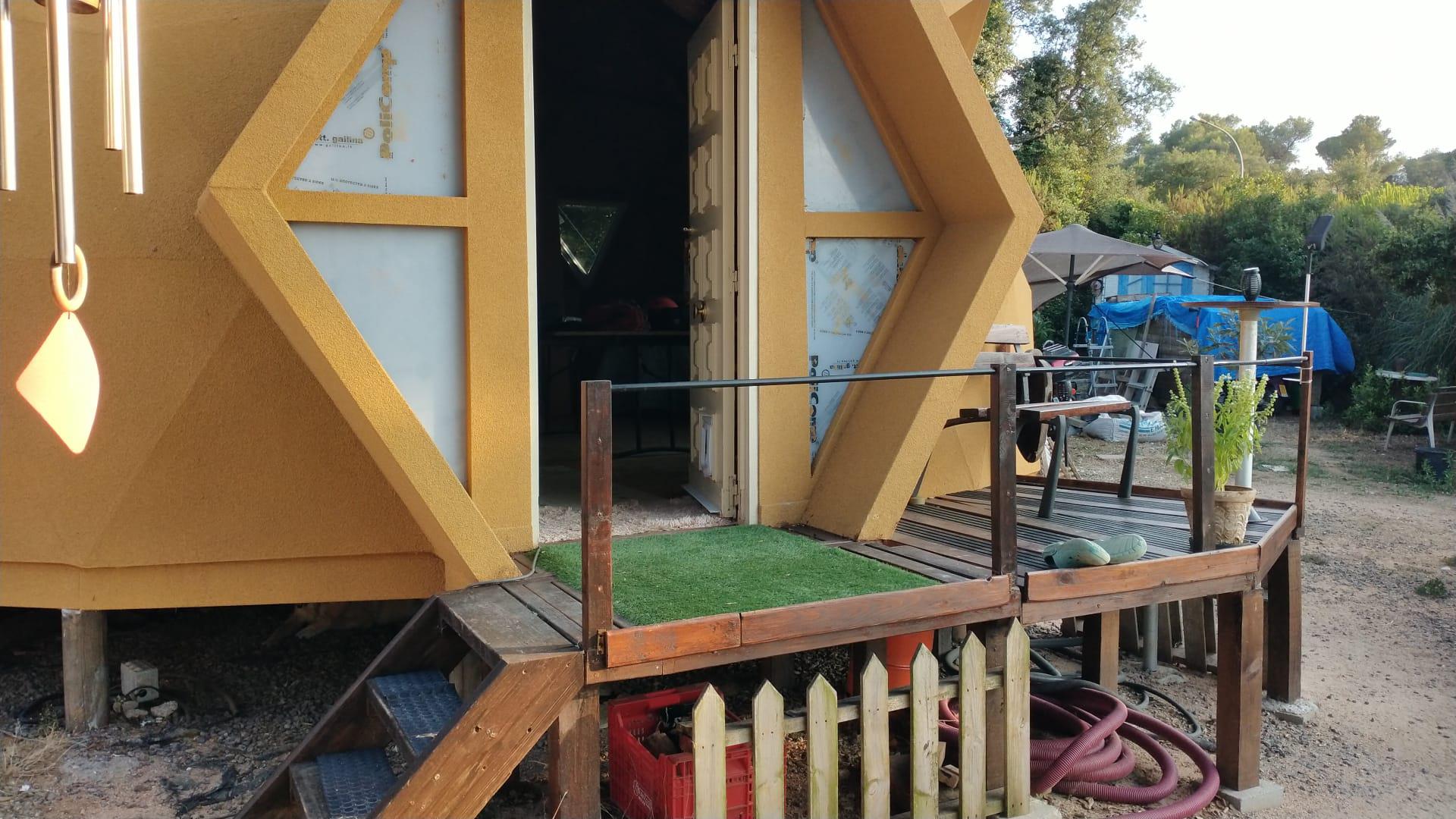 La superficie construida de la vivienda principal es de 80 m², organizada para aprovechar al máximo cada metro disponible. La distribución plantea una zona de día orientada a la convivencia y la apertura al exterior, y una zona de noche pensada para el descanso y la privacidad. Ambas están conectadas por un pasillo de 6 m², que actúa como elemento de transición y separación funcional.