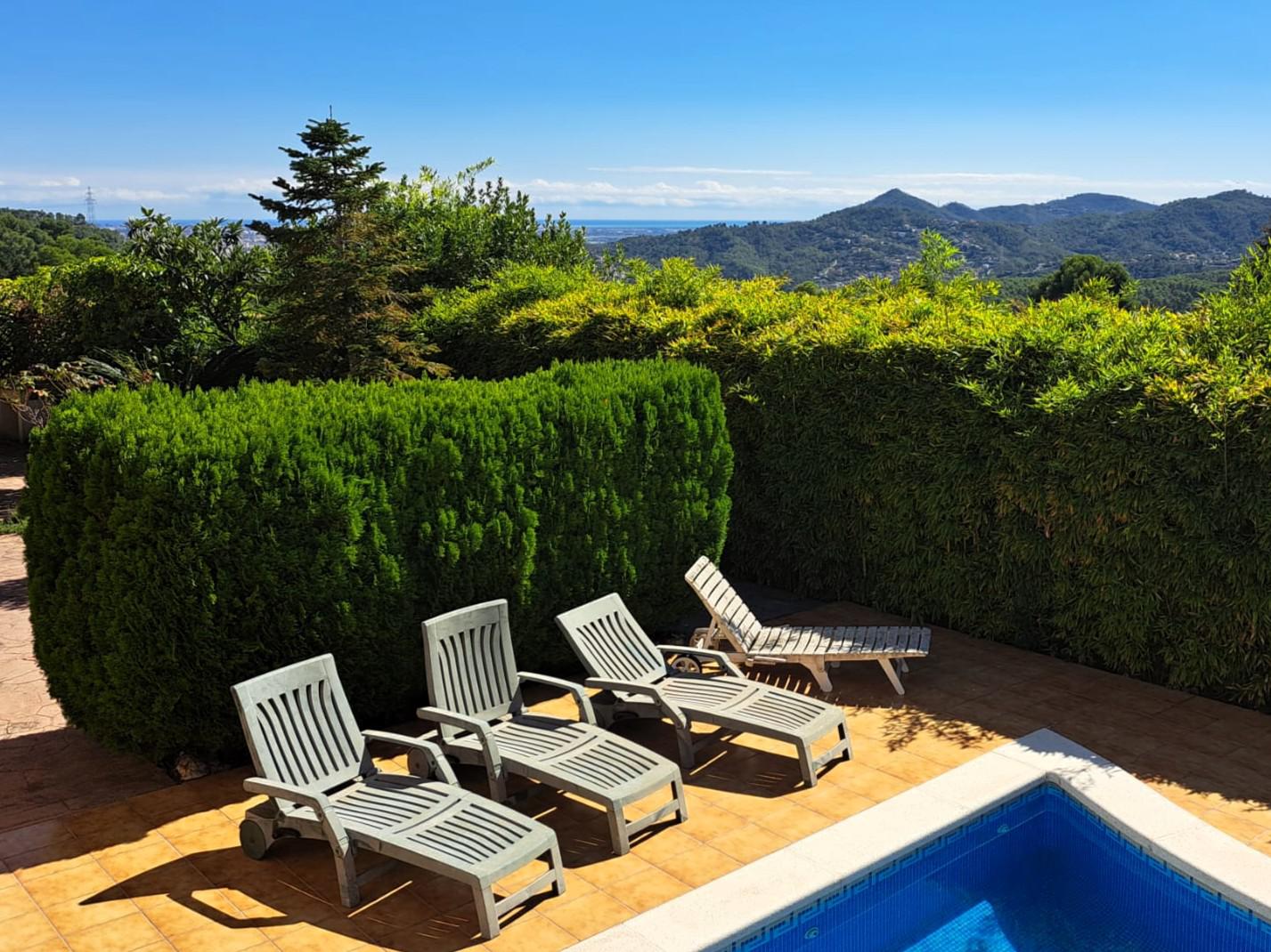 Casa en venta. Casa muy soleada y con unas vistas privilegiadas, completamente abiertas a la montaña y hasta el mar, con piscina y garaje.
