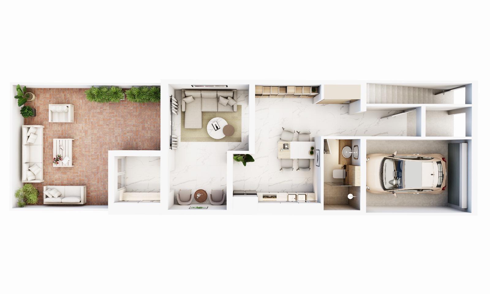 La vivienda cuenta con 60 m² construidos y está distribuida de forma práctica y funcional. Se compone de: