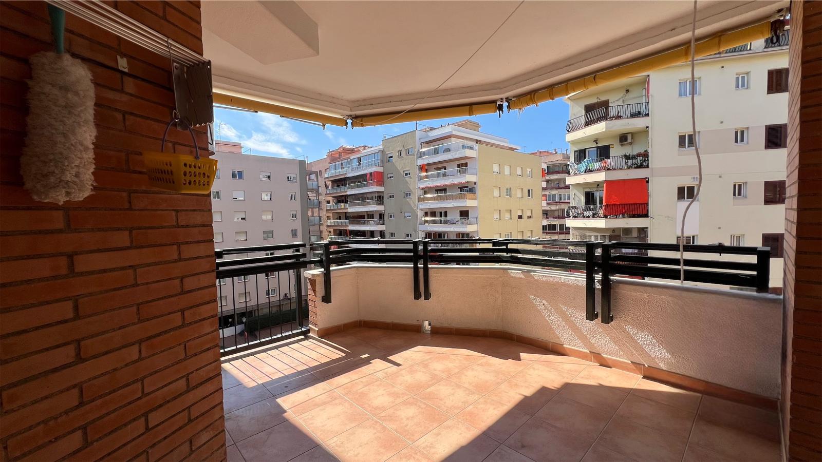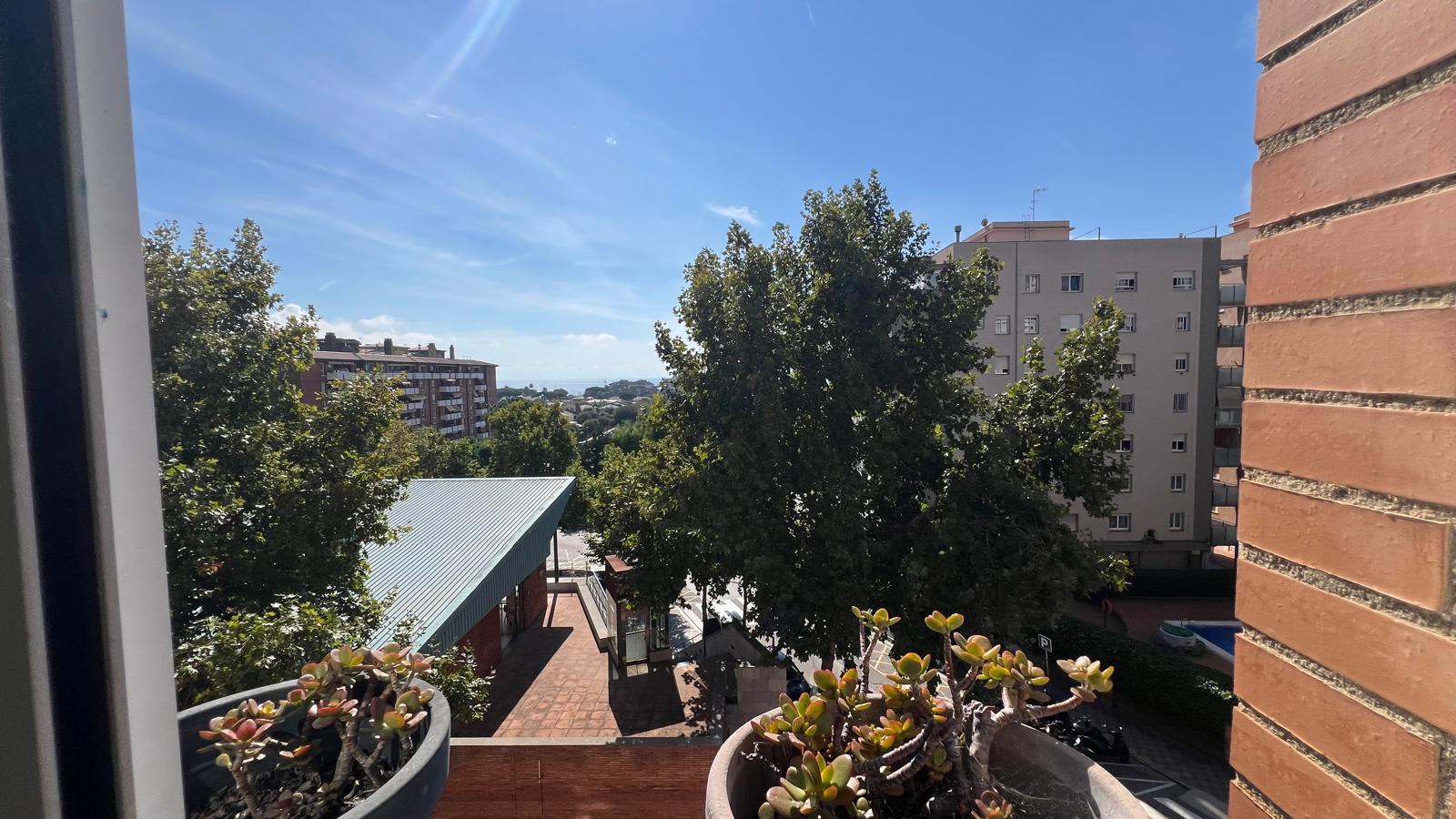 Amplio piso familiar en Premia de Mar con piscina comunitaria y vistas al mar.