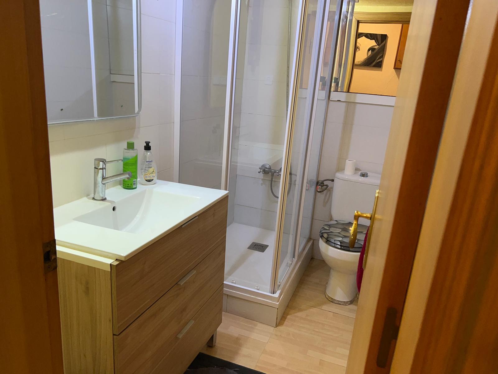 El baño completo, equipado con un plato de ducha, garantiza comodidad y un espacio ...
