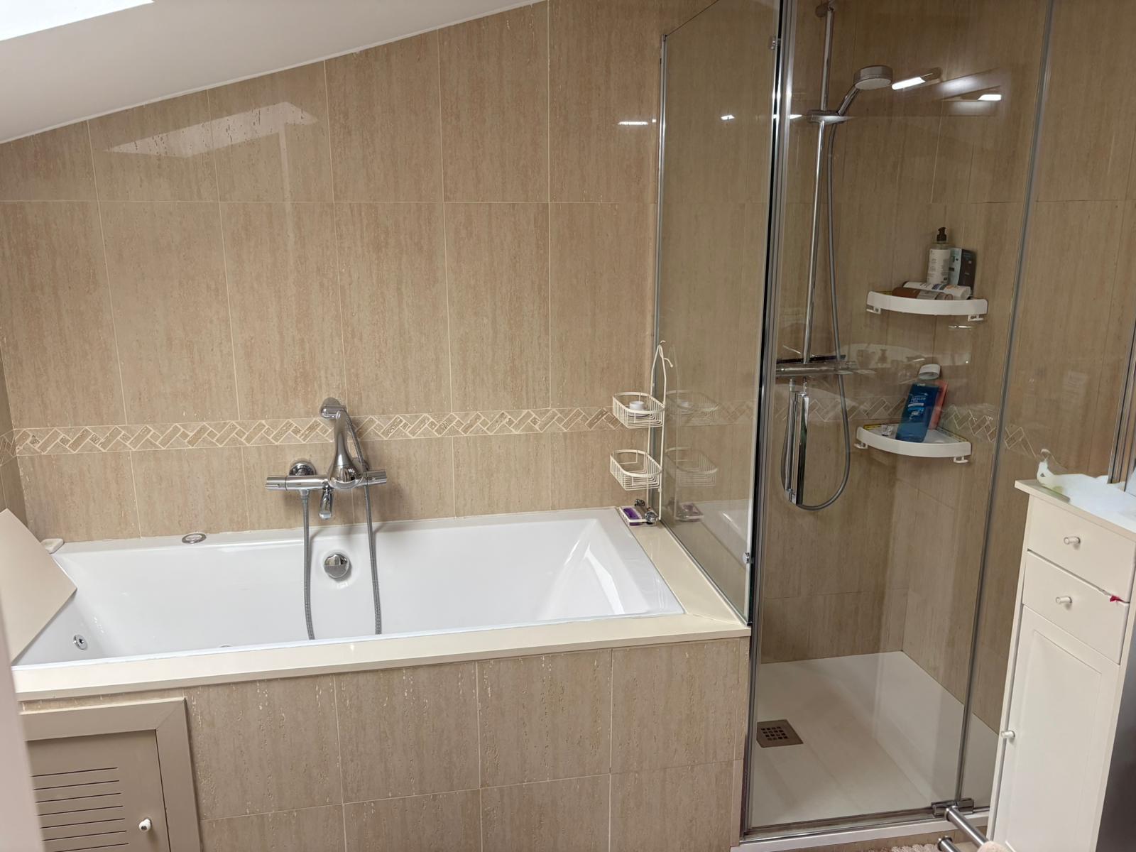 La segunda planta, bajo cubierta, ofrece un espacio único y versátil: una gran habitación tipo suite con baño privado de tres piezas y acceso a una terraza solárium de unos 18 m². Este espacio es ideal como dormitorio principal, despacho o zona de ocio, con total privacidad y una magnífica luz natural durante todo el día.