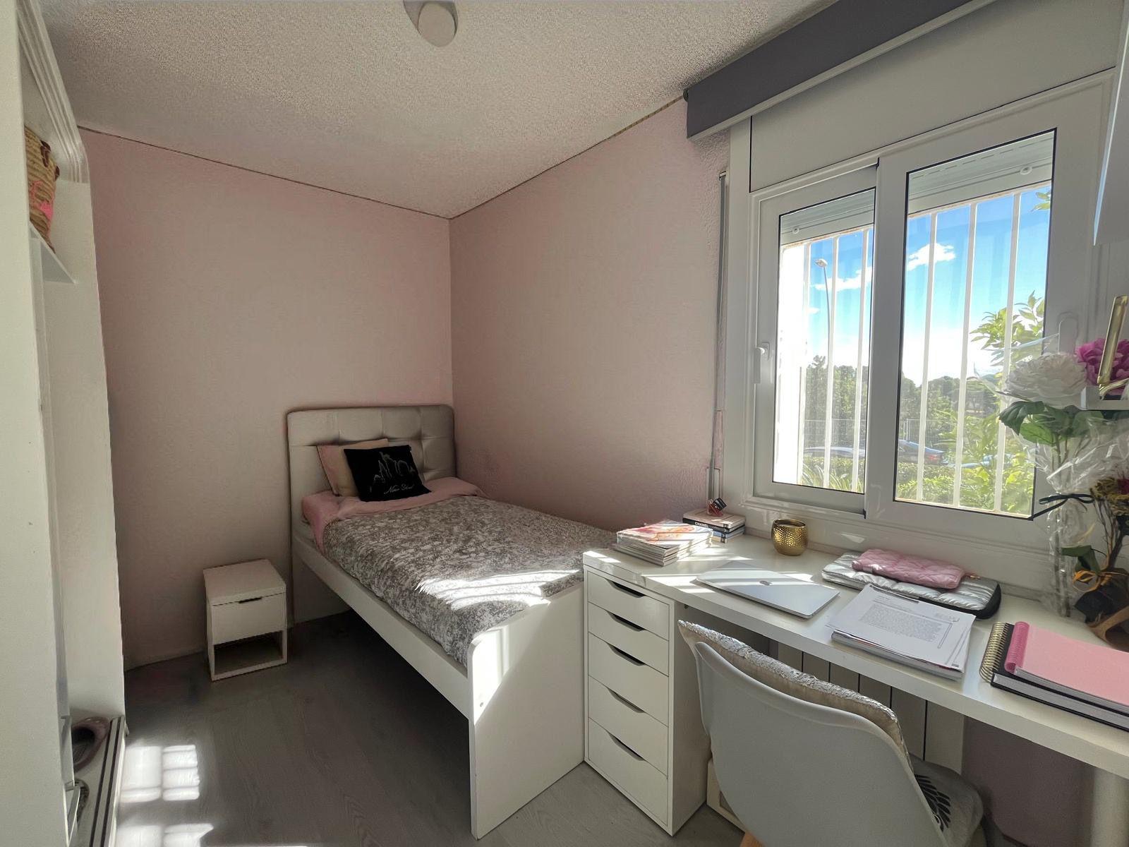 El piso cuenta con tres amplias habitaciones, perfectas para el descanso y la privacidad. La habitación principal dispone de ventana que permite la entrada de luz natural, creando un ambiente tranquilo y sereno. La segunda habitación es ideal como cuarto de invitados o espacio de trabajo. La tercera habitación también doble con luz natural. El baño, moderno y funcional, está equipado con bañera de hidromasaje con música incorporada para poder disfrutar de relajación total y muebles de almacenamiento que optimizan el espacio. Este inmueble también incluye aire acondicionado, calefacción y suelos de parquet, lo que garantiza una temperatura agradable durante todo el año y un mantenimiento fácil.