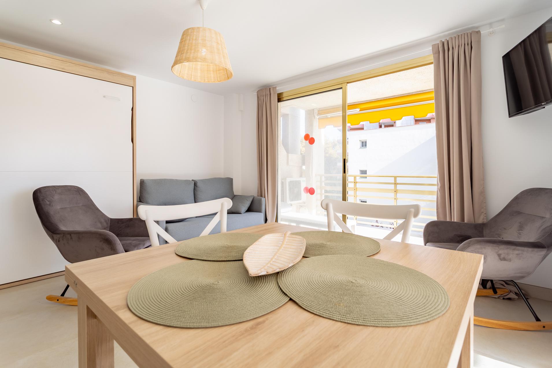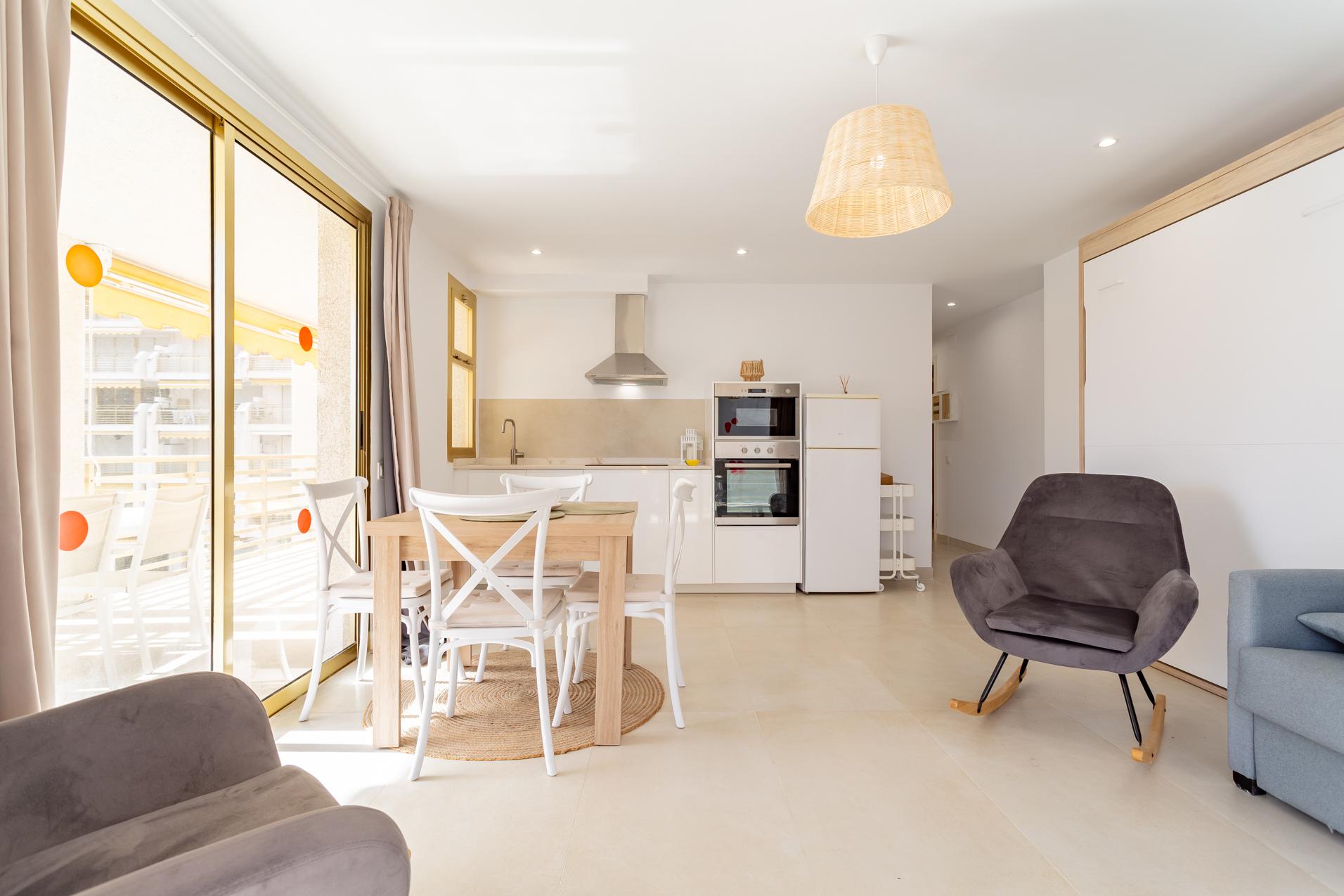 La vivienda está distribuida en una habitación doble, un baño completo, una cocina equipada y un luminoso salón-comedor con salida directa a una terraza privada, perfecta para disfrutar del clima mediterráneo y del ambiente veraniego de Salou.