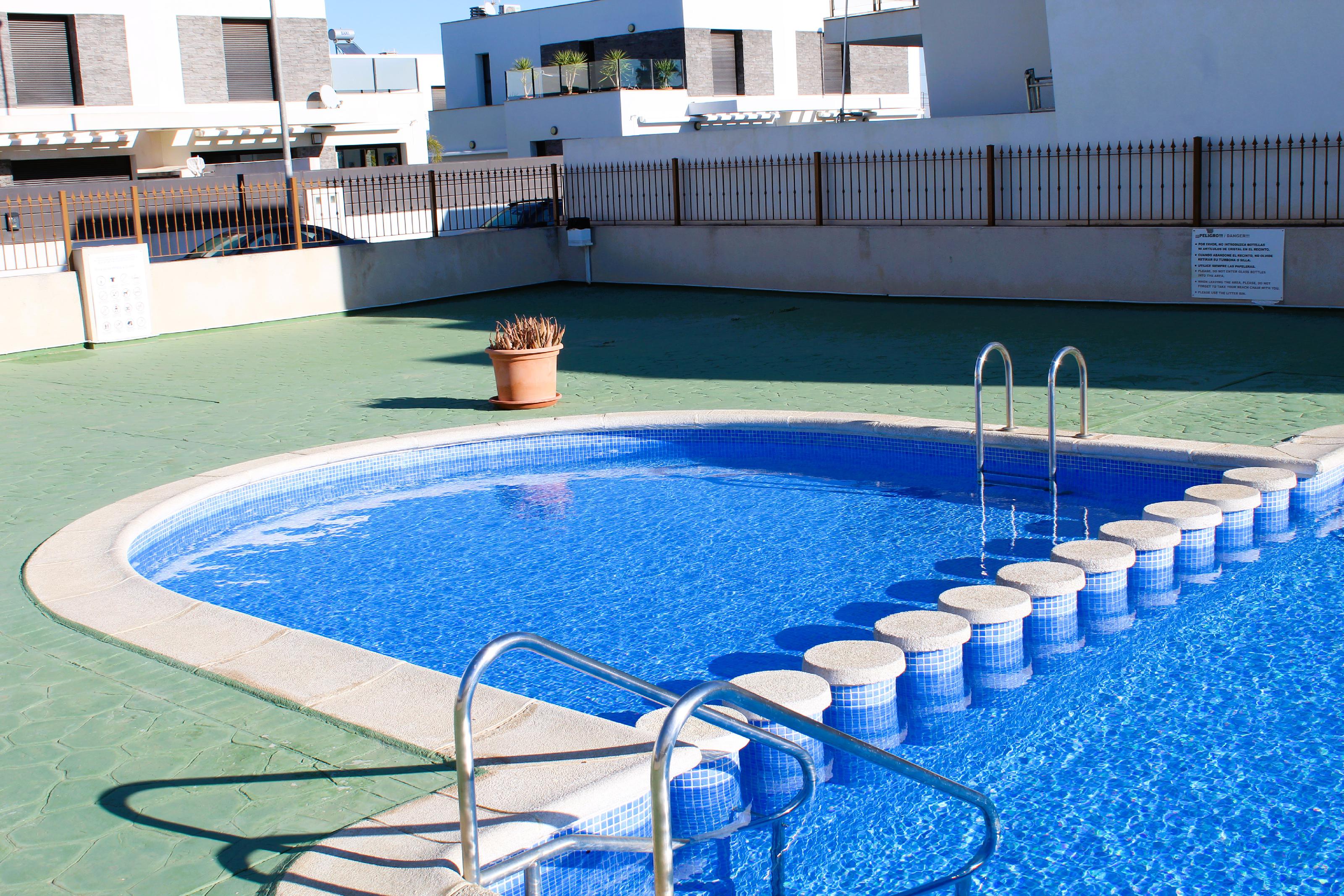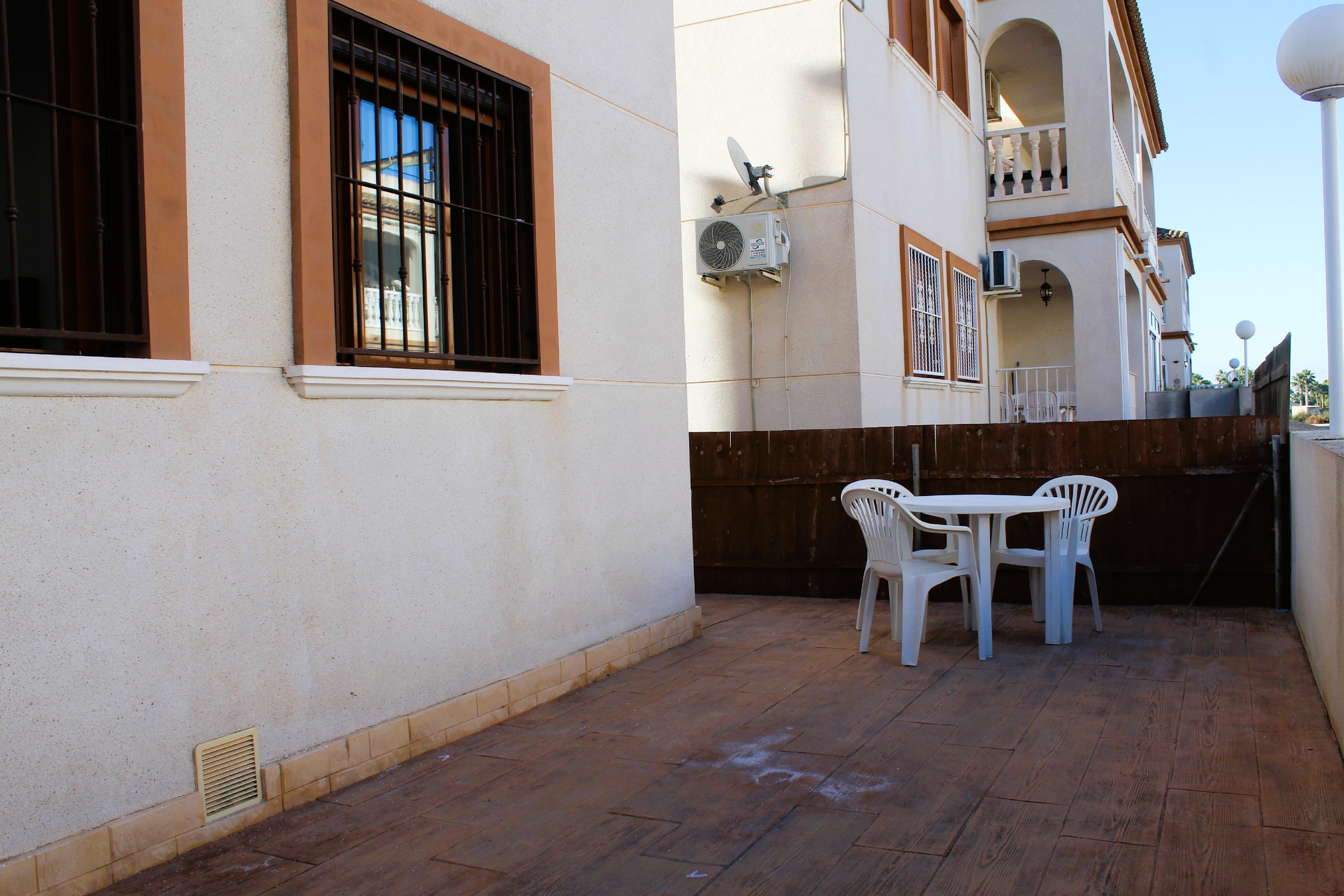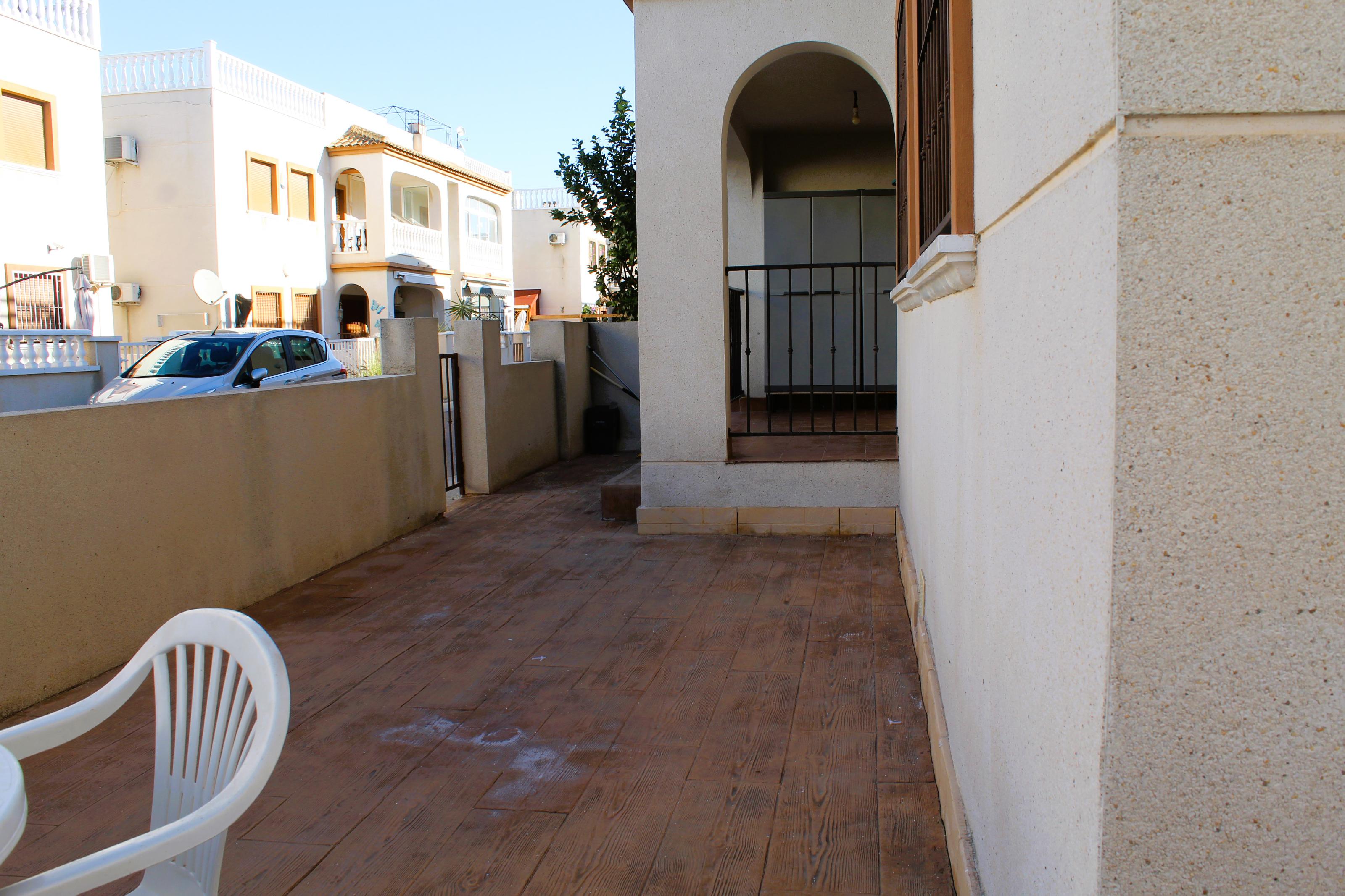 Casa Adosada en venta. Bungalow bajo 2 habitaciones, recién pintado, listo para entrar a vivir y con gran terraza privada y piscina comunitaria.