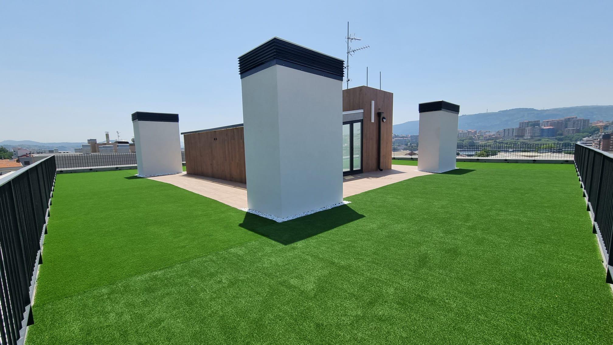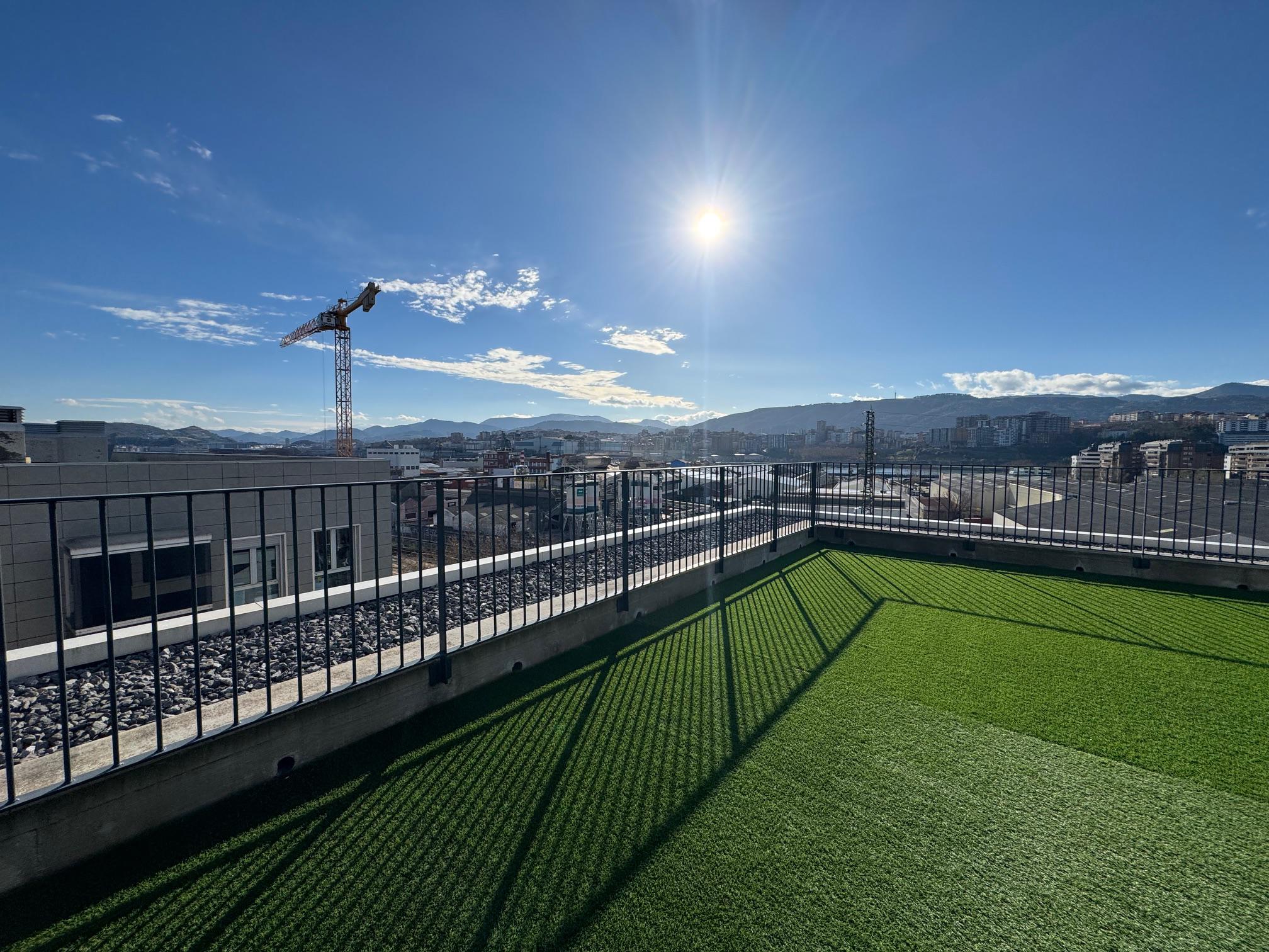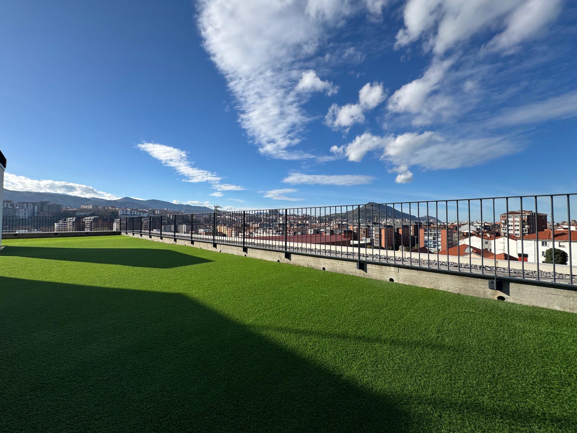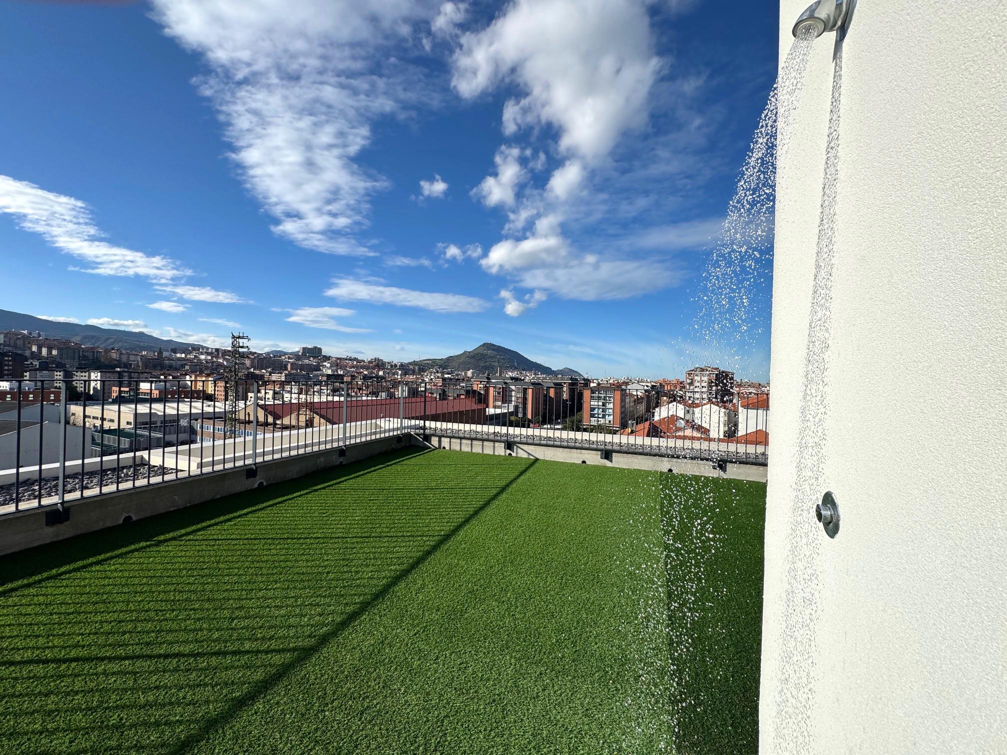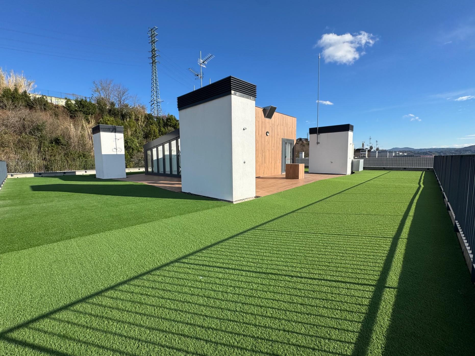 - Azotea, solárium comunitaria con césped artificial y duchas, ideal para disfrutar del verano tanto de día como de noche